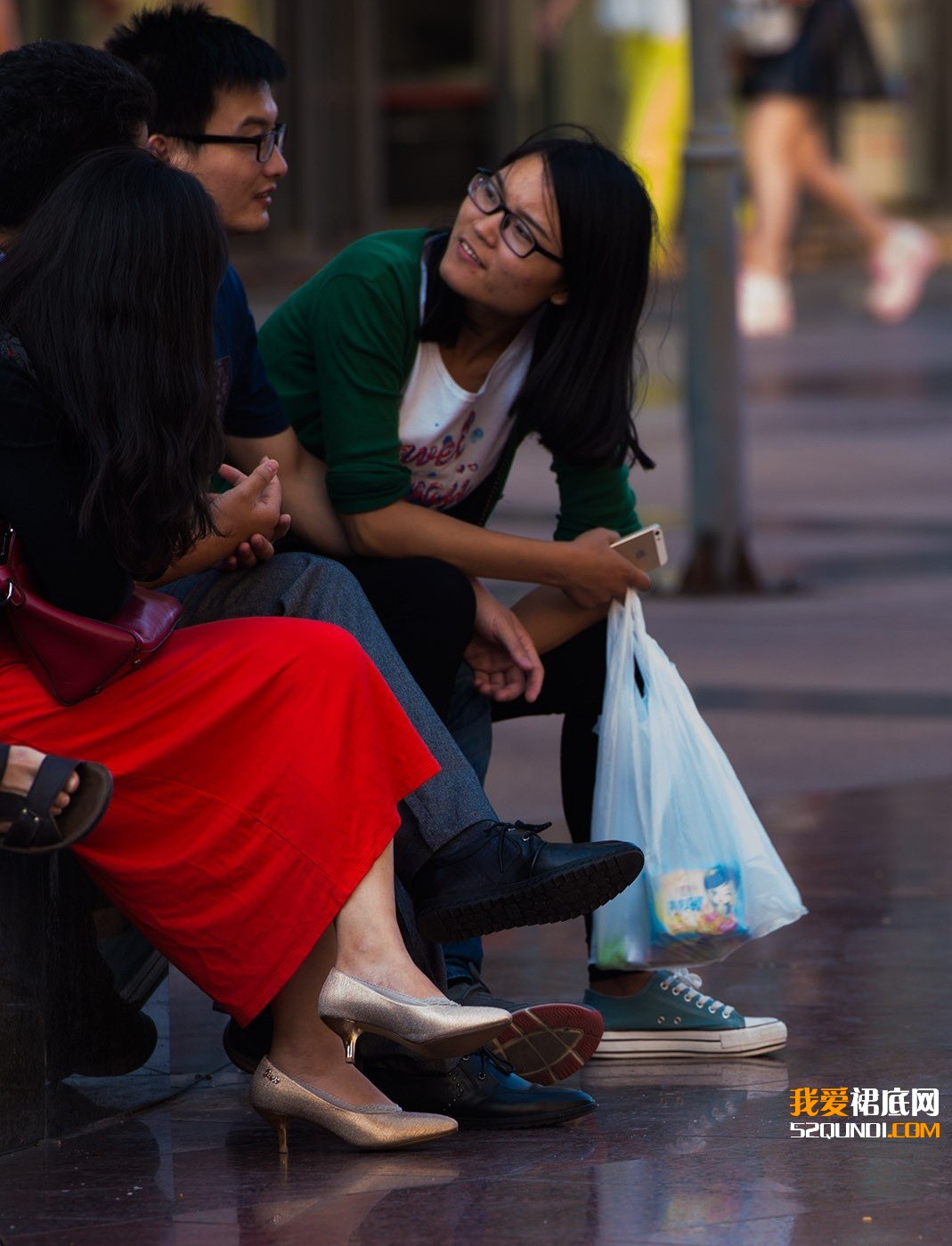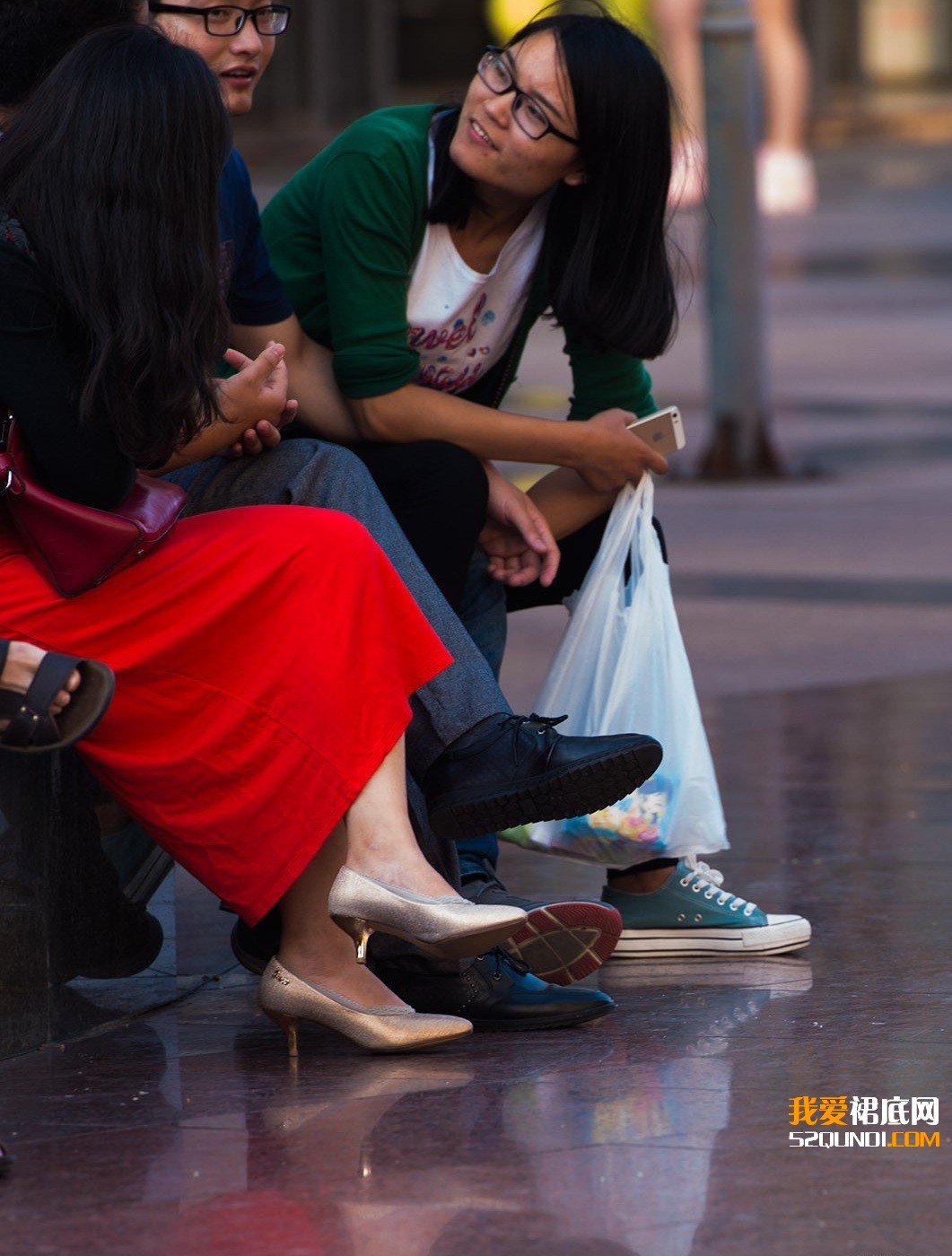 重点是红裙美女的鞋