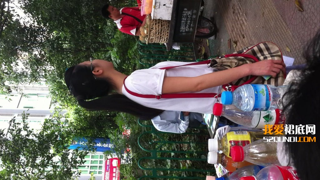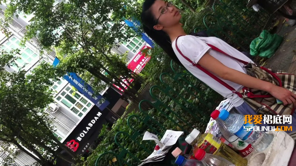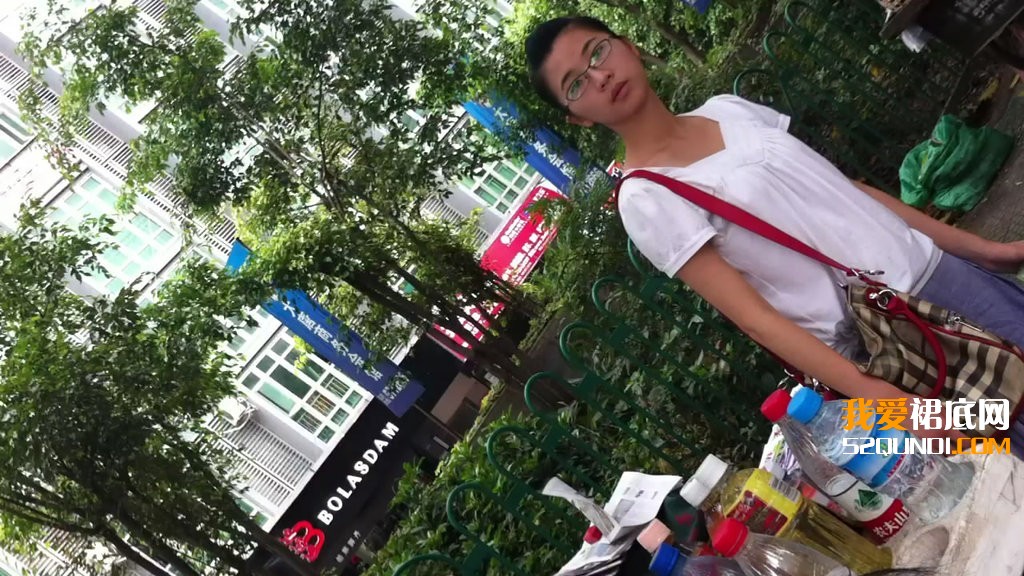公交车站点等车拍的MM