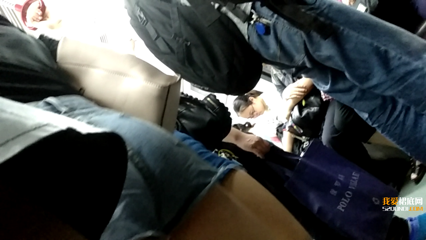 地铁抄底蓝色短裙高个美女