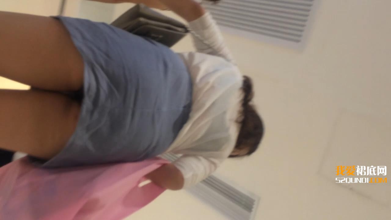 商场抄底蓝色裙子透明上衣少妇[8P]